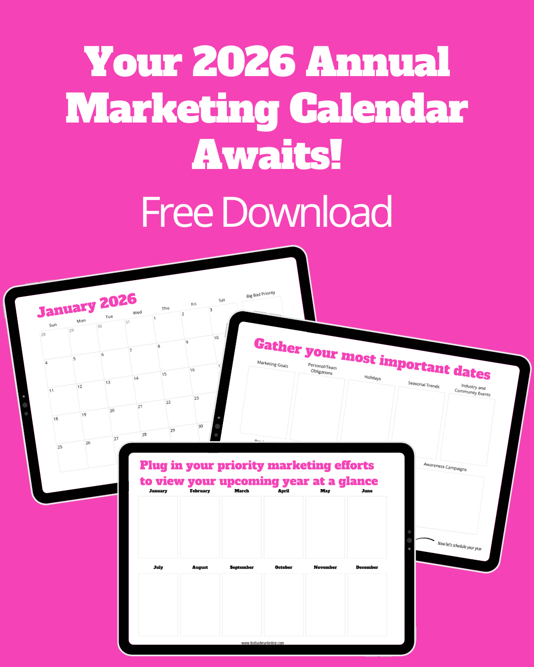 This annual marketing calendar helps you get clear on your most important marketing priorities, so you can do the fun, creative parts of marketing your biz with less hassle.
